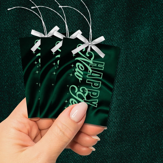 Elegant Emerald Green Happy New Year Printable Gift Tags – Perfect for Festive Celebrations | Given Crafted Wonders