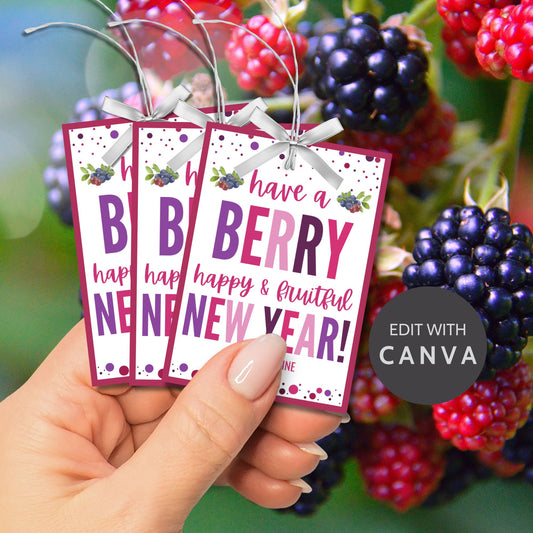 Berry-Themed Editable New Year Gift Tags | Printable & Customizable | Given Crafted Wonders