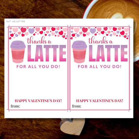 Thanks a Latte Valentine Gift Card Holder | Coffee Gift Card Teacher Nurse PTA PTO Coworker Colleague Friend Gift Card | Pink Beige Tan Red