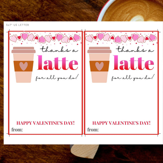 Thanks a Latte Valentine Gift Card Holder Boy Guy Him | Coffee Gift Card Teacher Nurse PTA PTO Coworker Colleague Friend Gift Card