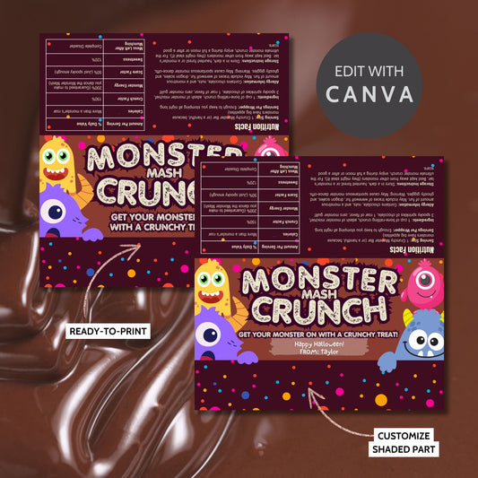 Monster Mash Crunch Halloween Chocolate Bar Wrappers | Editable and Printable
