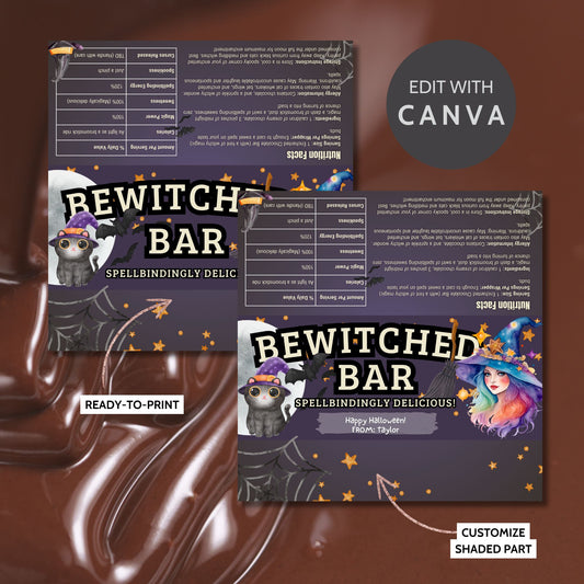 Bewitched Bar Halloween Chocolate Wrappers | Editable and Printable