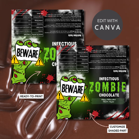 Infectious Zombie Halloween Chocolate Bar Wrappers | Editable and Printable