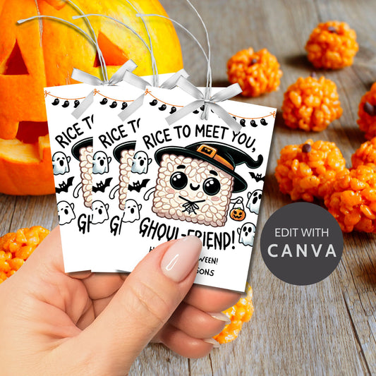 Halloween Printable & Editable Gift Tags | Rice to Meet You Halloween Gift Tags for Rice Krispie Treats | Given Crafted Wonders