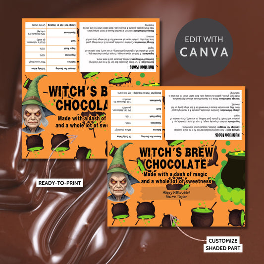 Witch's Brew Chocolate Bar Wrappers | Editable Halloween Treat Wrappers