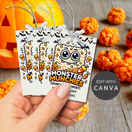 Halloween Printable & Editable Gift Tags | Monster Munchies Gift Tags for Rice Krispie Treats | Given Crafted Wonders