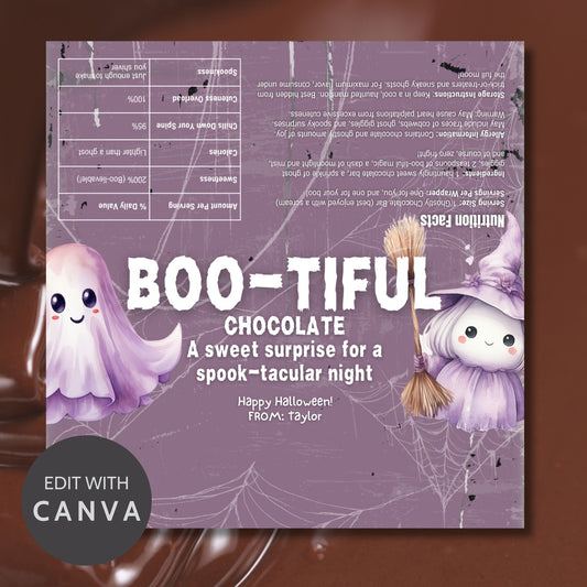 Boo-tiful Ghost Halloween Chocolate Bar Wrappers | Editable and Printable
