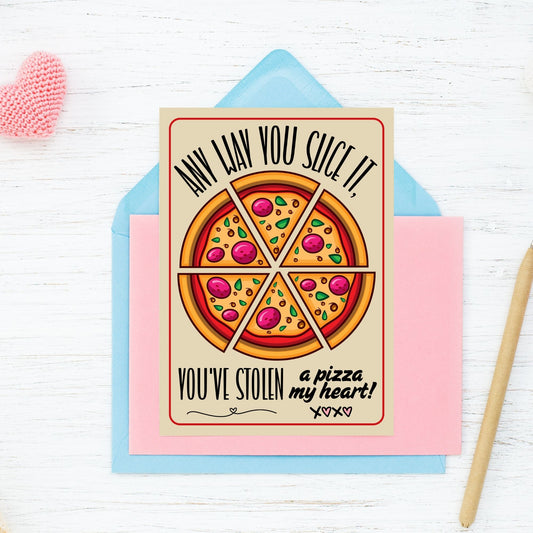 Punny Printable Valentine's Day Greeting Card | 5x7 PDF with "Any Way You Slice It, You've Stolen a Pizza My Heart" | Instant Download | Given Crafted Wonders