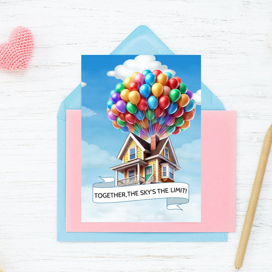 Up Movie-Inspired Printable Valentine's Day Greeting Cards | 5x7 PDF with "Together the Sky's the Limit" Design | Instant Download | Given Crafted Wonders