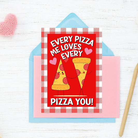 Punny Printable Valentine's Day Greeting Card | 5x7 PDF with "Every Pizza Me Loves Every Pizza You" Design | Instant Download | Given Crafted Wonders
