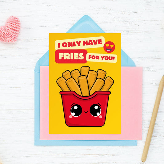 Punny Printable Valentine's Day Greeting Card | 5x7 PDF with "I Only Have Fries for You" | Instant Download | Given Crafted Wonders