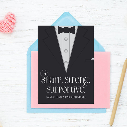Printable Father’s Day Card for Him – Sharp Strong Supportive – 5x7 PDF Digital Download