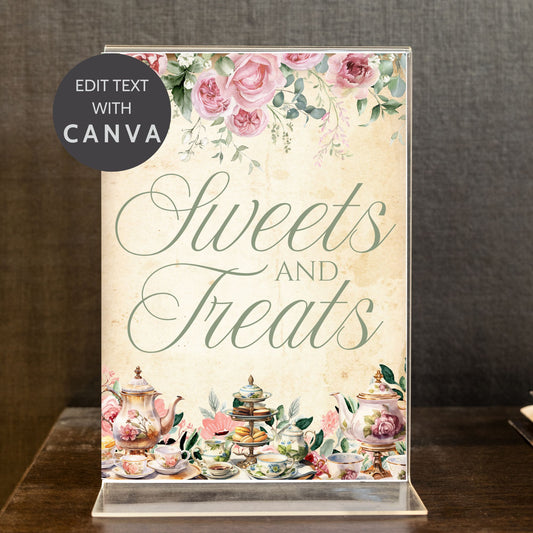 Vintage Botanical Tea Party Table Signs | Editable Canva Template | Floral Event Signs Printable | Given Crafted Wonders