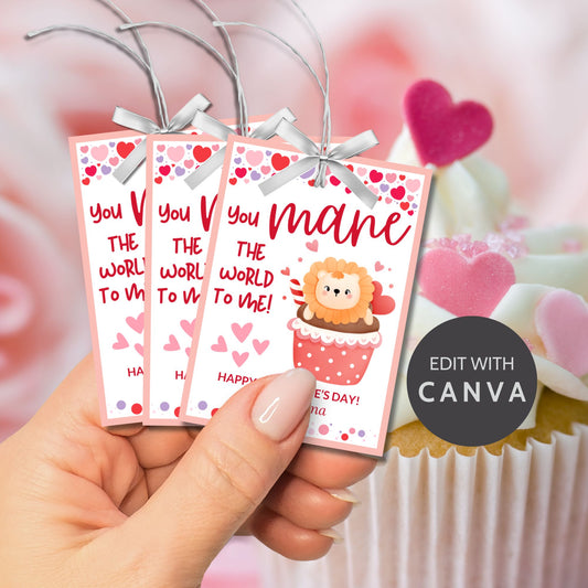 Editable Lion & Cupcake Valentine’s Gift Tags - Printable Sweet Treat Tags | Given Crafted Wonders
