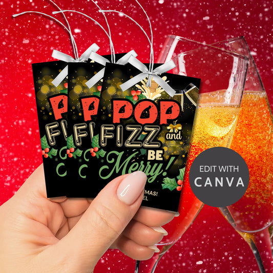 Pop, Fizz, and Be Merry! Champagne Gift Tags | Printable & Editable Holiday Bubbly Tags | Appreciation Holiday Tags | Given Crafted Wonders