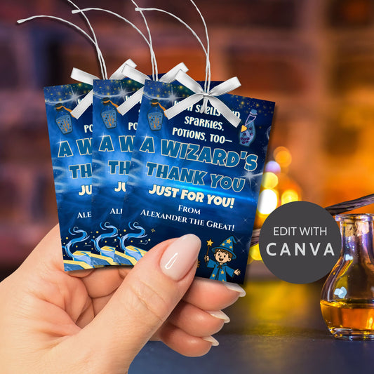 Editable Wizard Party Gift Tags | Printable Magical Favor Tags for Birthday, Class Gifts, and Wizard Events