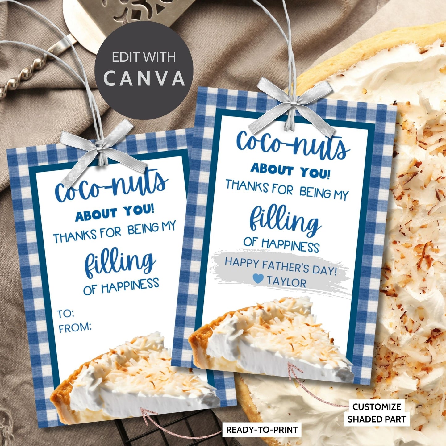 Coco-Nuts About You Father's Day Gift Tags | Customizable Tags for Dad's Coconut Pie Gift