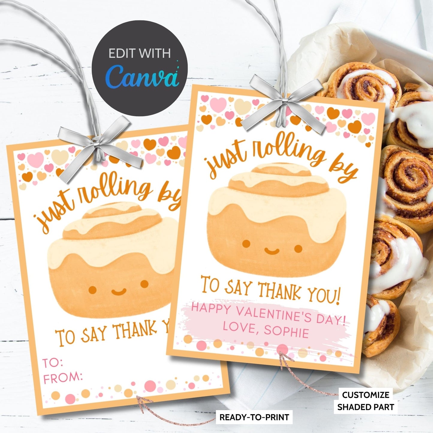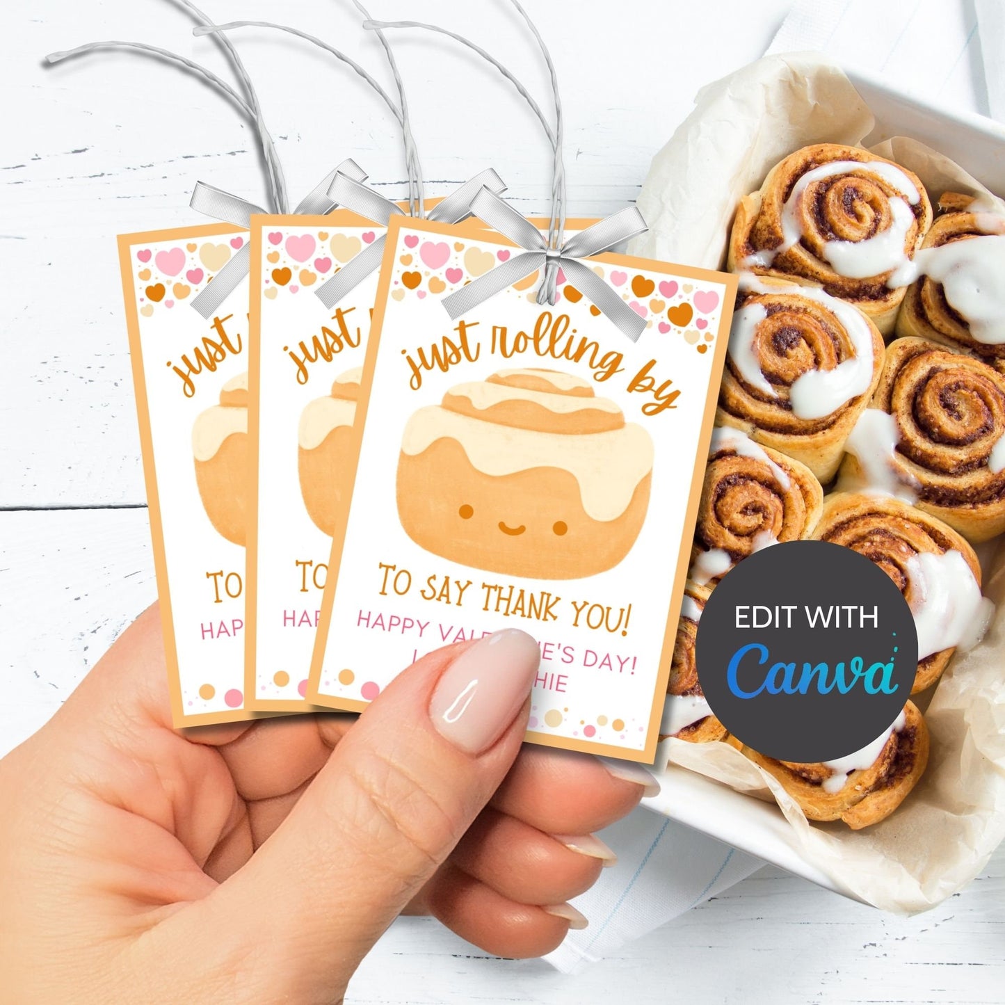 #ThankYouTags #CinnamonRollLove #CustomTags #EditablePrintables #ValentinesDay #SweetThanks #GratitudeGift #CanvaEditable