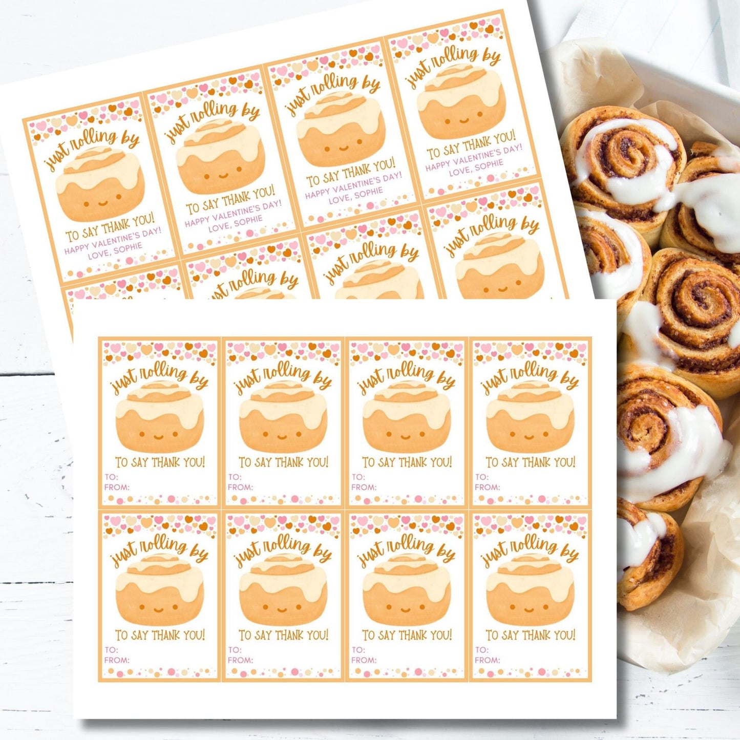 Show your sweet appreciation with these delectable cinnamon roll-themed gift tags! Perfect for Valentine's Day or just because, these tags are a delightful way to express your thanks. Here's the scoop on what you'll receive: