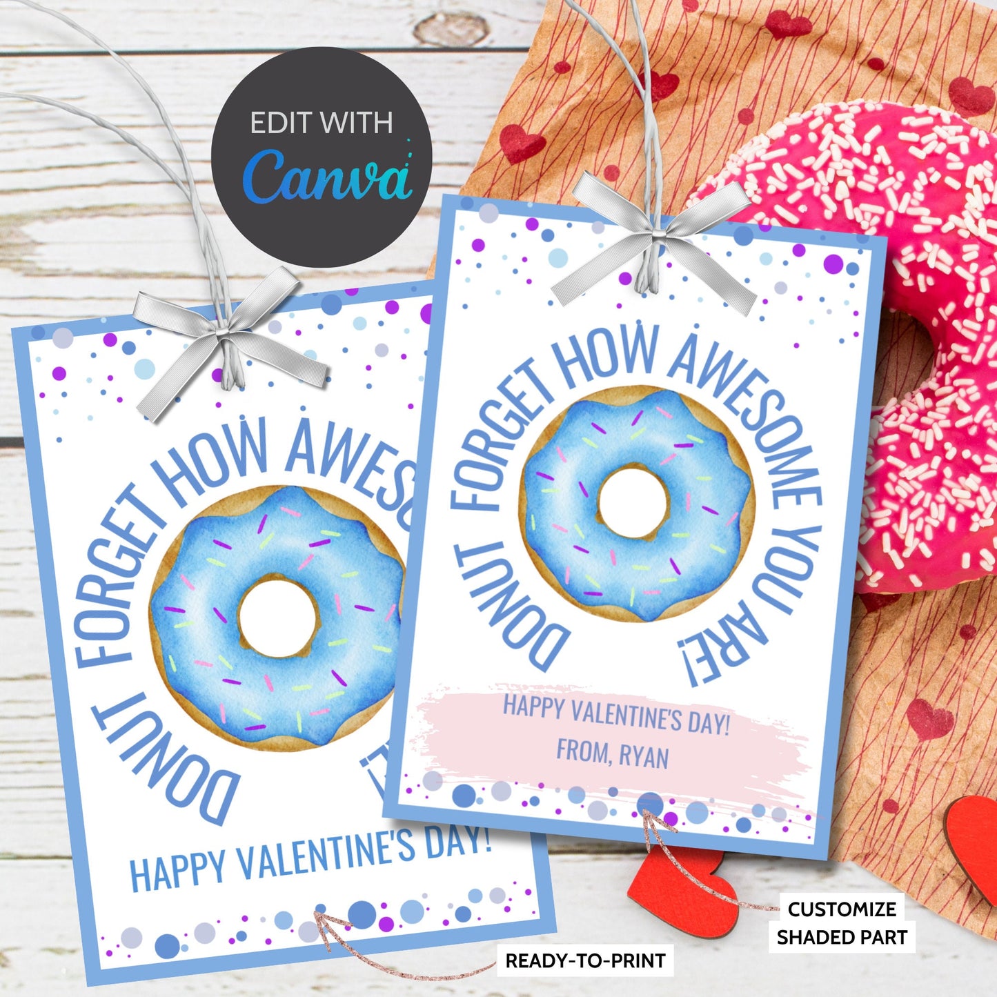 π©β¨ "Donut Forget How Awesome You Are" - Personalizable Valentine's Day Gift Tags (PDF & Editable Canva Template) ππ
