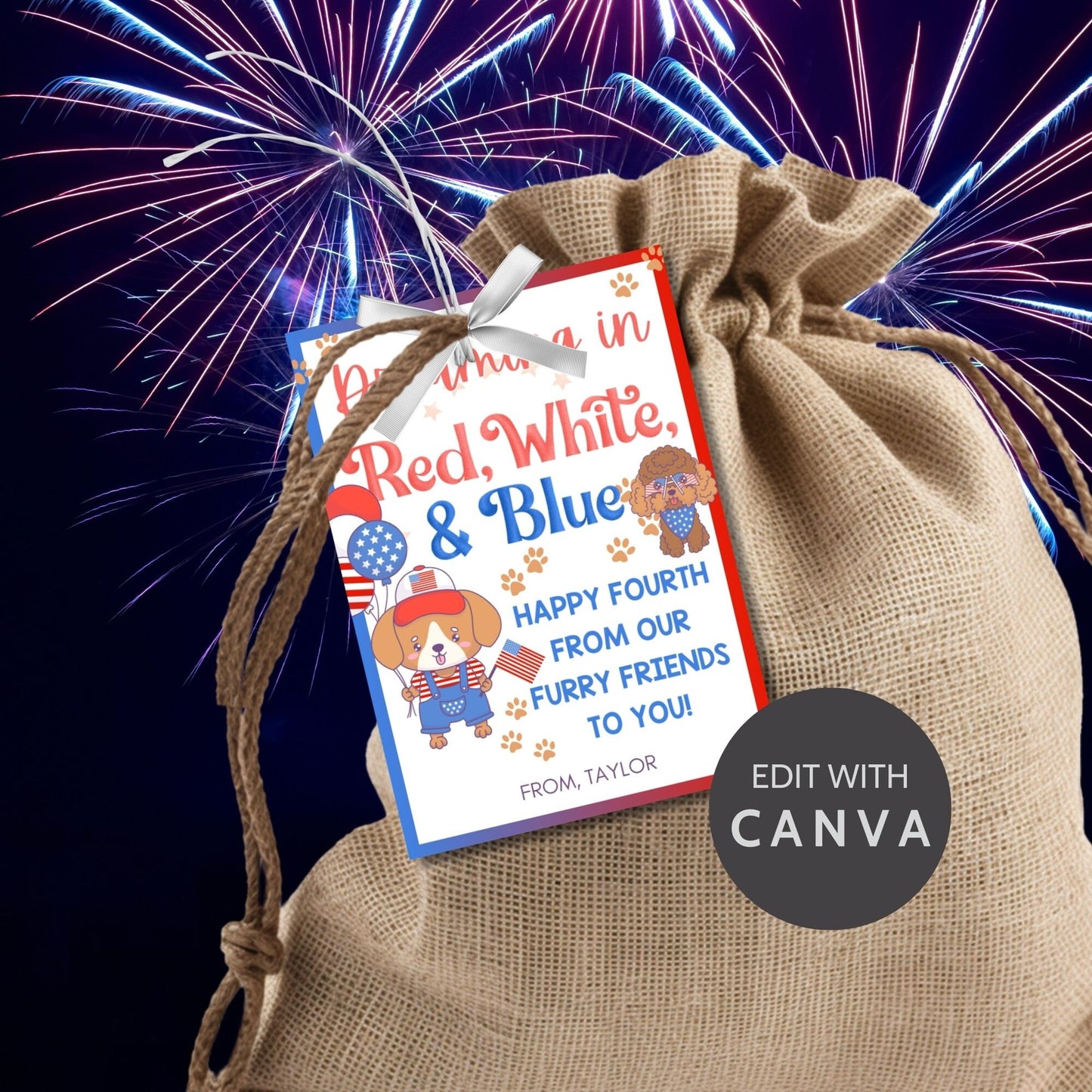 Dreaming in Red, White, Blue 4th of July Printable Gift Tags | Editable Instant Download | Perfect for Pet Lovers & Party Favors