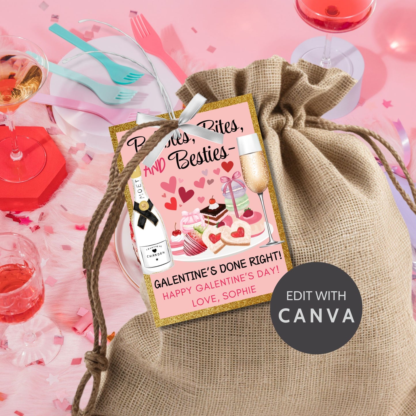 #GalentinesDayTags #BubblesBitesAndBesties #ChampagneGiftTags #GirlsNightGifts #EditableGiftTags #ValentinesDayForBesties #BridalShowerTags #PrintableGiftTags