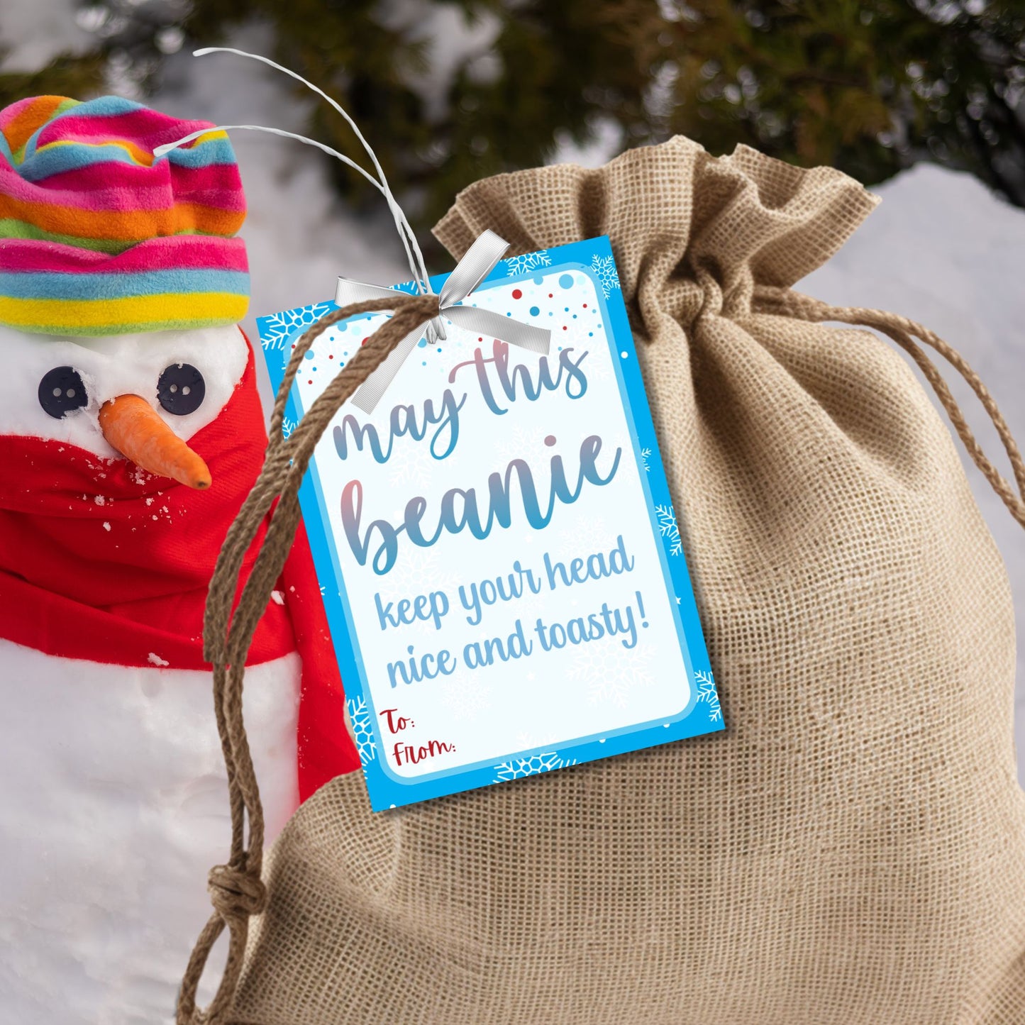 Warm their hearts and heads this holiday season with these cozy "May This Beanie Keep Your Head Nice and Toasty!" printable and editable gift tags.