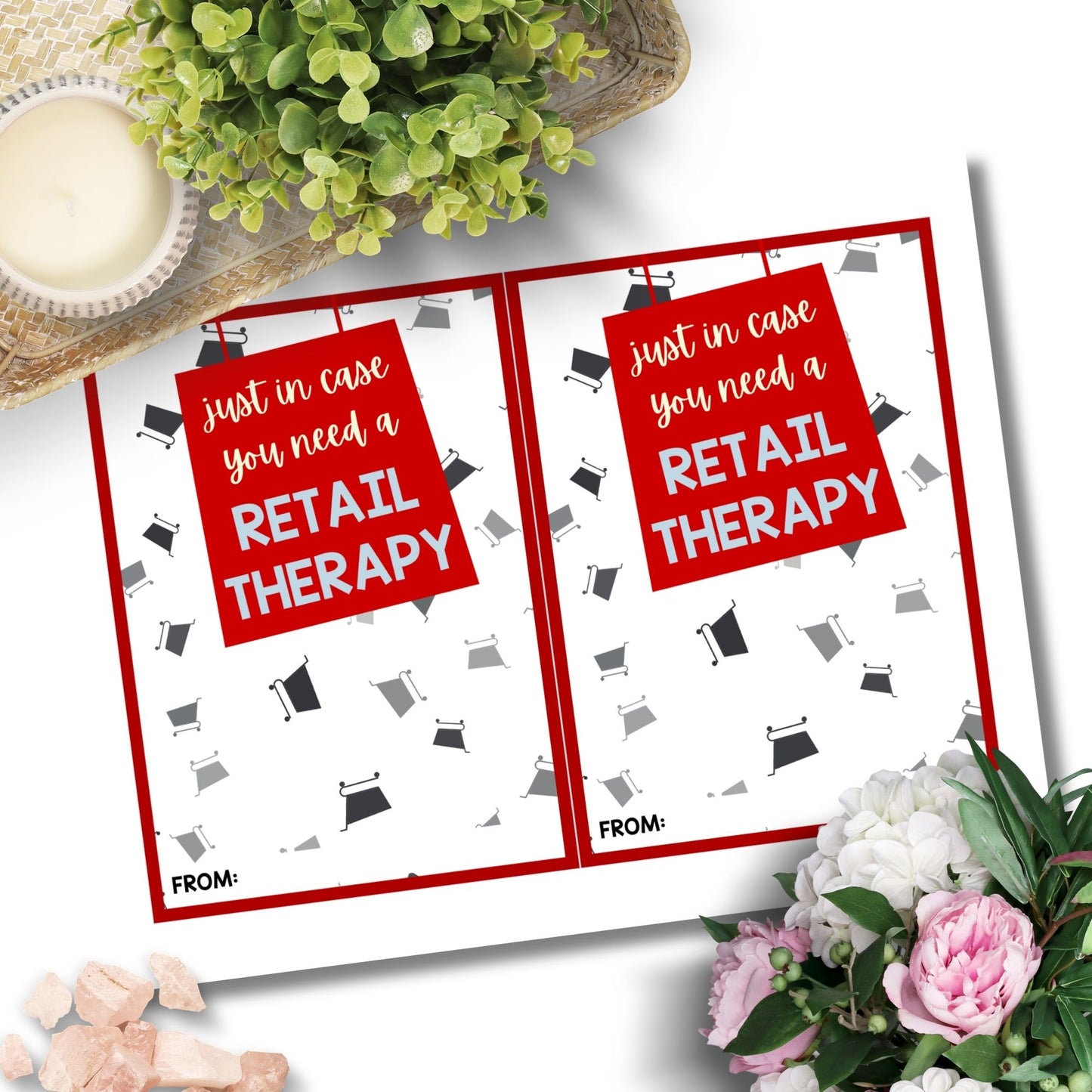 Each holder features a chic design with the fun message "Just in Case You Need a Retail Therapy." Whether it's for a birthday, holiday, graduation, or just because, these holders will ensure your gift card stands out and brings a smile to the recipient's face.