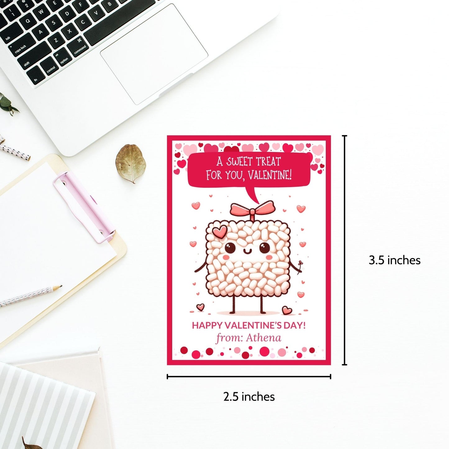 Rice Krispy Sweet Treat Printable Valentine Card Tag | Rice Crispies | Kids Classmate Classroom Friend Snack Bar Favor Tag | Editable Canva