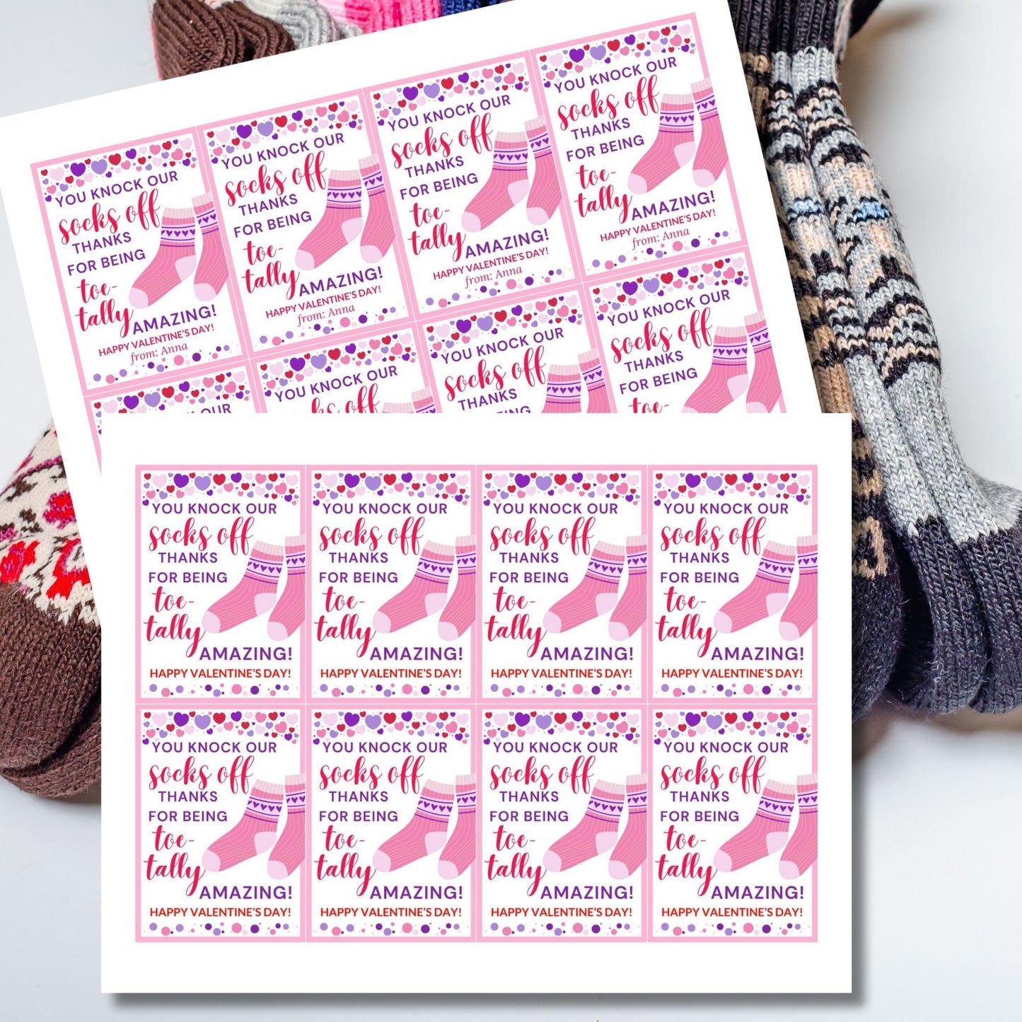 🧦💖 Step into the Valentine's Day spirit with our "You Knock Our Socks Off" gift tags! Perfect for wrapping up a warm pair of socks or any gift that toes the line of adorable and thoughtful, these tags are sure to get your Valentine's heart 'pitter-pattering' like a happy dance!