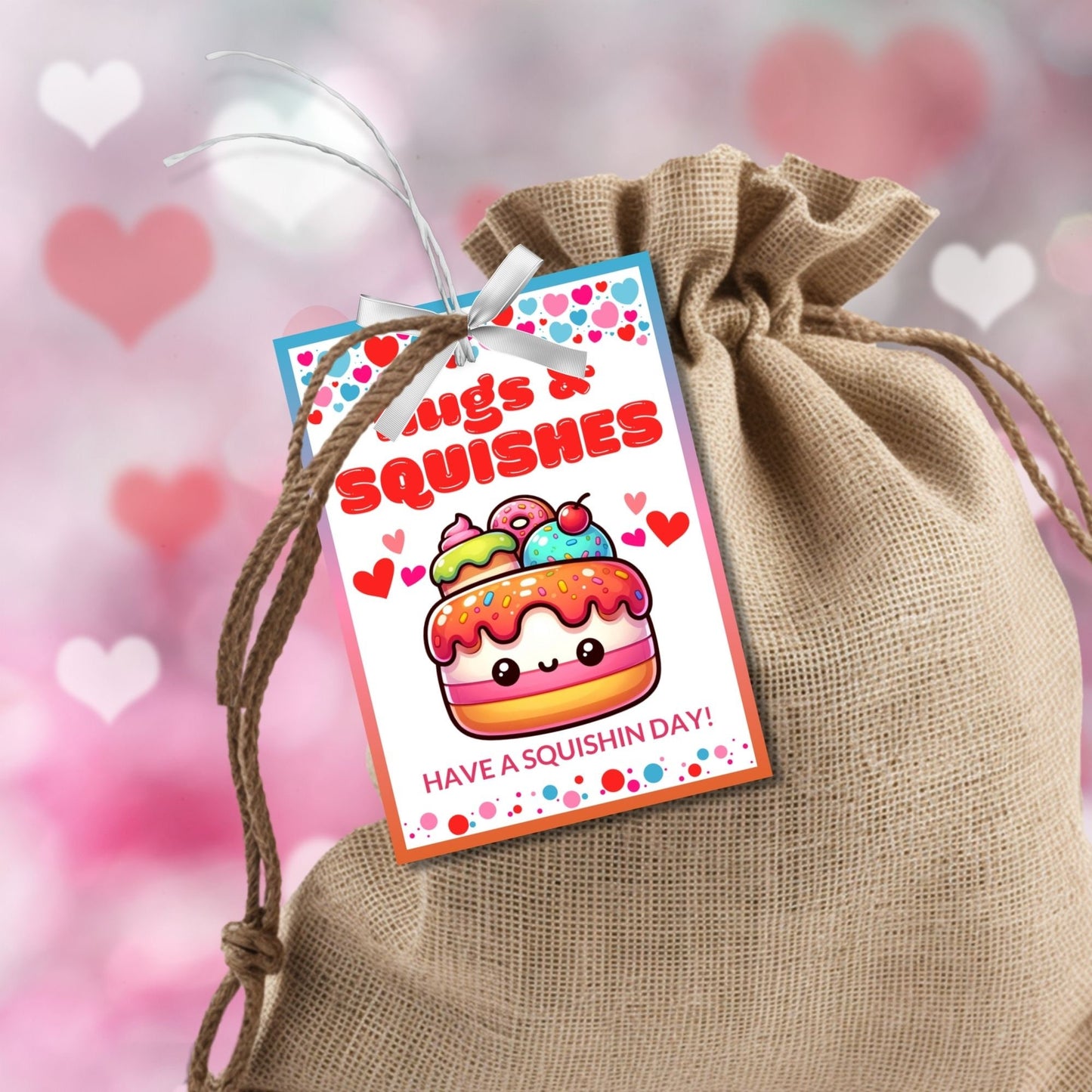🤗🍰 Get ready to sprinkle your Valentine's Day with a dash of adorable and a pinch of love! Introducing our "Hugs & Squishes. Have a Squishin Day" gift tags, perfect for adding a touch of sweetness to any gift that's meant to be cherished and squeezed!