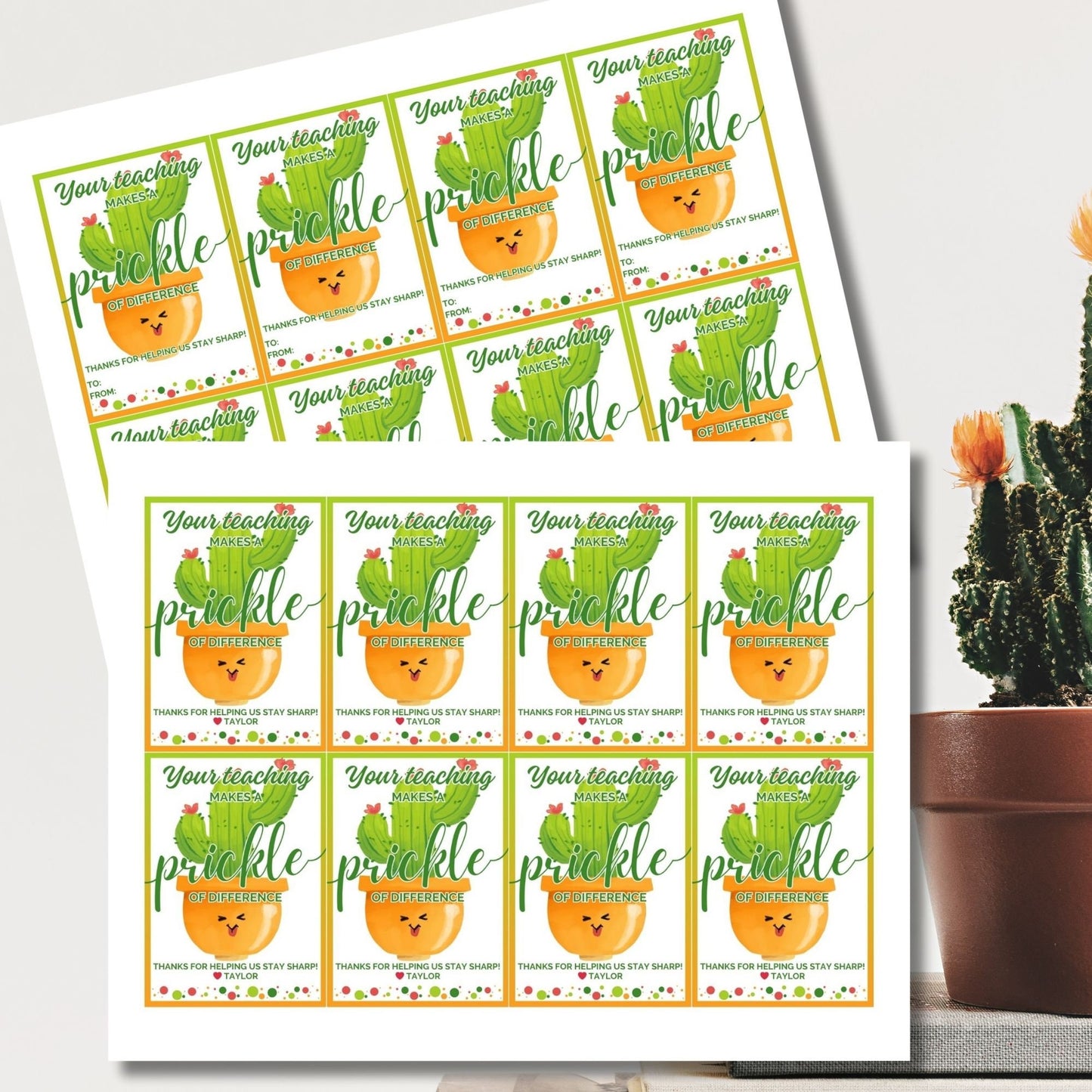 Get your "Your Teaching Makes a Prickle of Difference" cactus tags now and let the educators know how theyβve enriched your world!